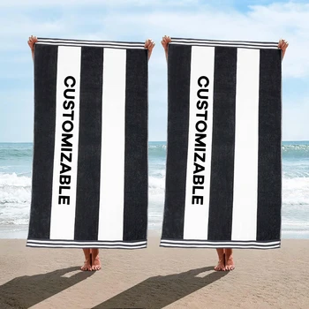 100% Cotton Embroidery Logo Oversized Extra Large Terry Pool Towel Custom Jacquard Printed Striped Bath Towel Cotton Beach Towel
